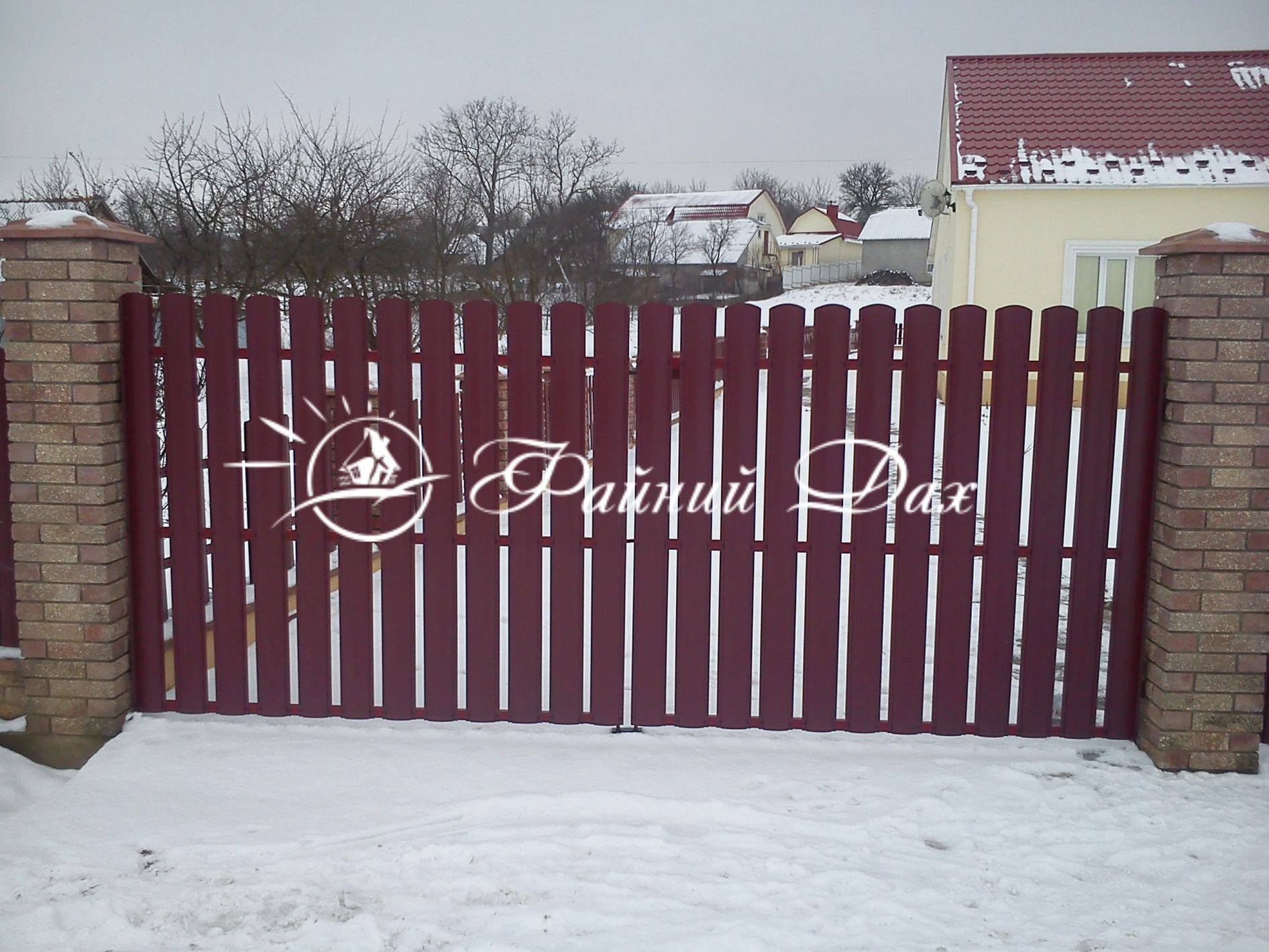 Встановлення секційних заборів з євроштахетника в готові пройоми плоту.